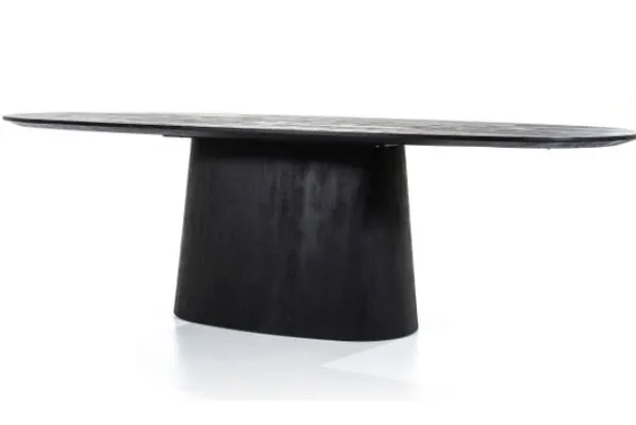 Eettafel Aron van het merk Eleonora is een stijlvolle tafel gemaakt van mangohout met een diepe, zwarte afwerking. De combinatie van het taps toelopende blad en de robuuste poot zorgt voor een krachtige uitstraling met een moderne twist. Dit meubelstuk geeft direct karakter aan jouw eetruimte.