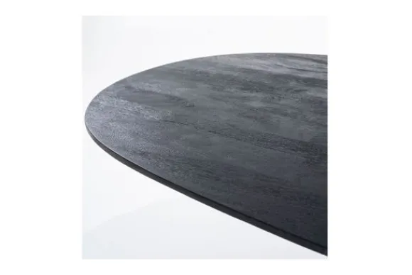 Het mangohout is afgewerkt met een donkere lak waardoor de nerven subtiel zichtbaar blijven. Dit zorgt voor diepte in de kleur en maakt elke tafel net even anders. Het stevige onderstel maakt deze tafel tot een praktische en stijlvolle keuze voor dagelijks gebruik.