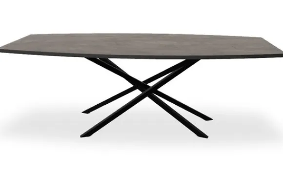 Eettafel Mendoza van het merk Every Table BV heeft een tonvormig HPL blad van 2,8 centimeter dik. De vorm geeft de tafel een strakke en eigentijdse uitstraling. Het blad is standaard voorzien van een rechte rand.