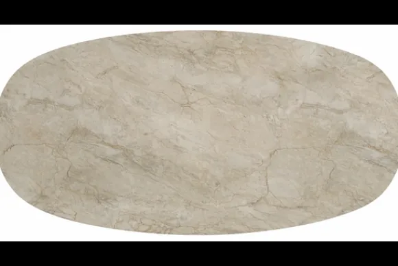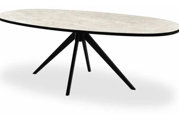 Eettafel San Lorenzo van het merk Every Table BV is uitgevoerd met een stomp ovaal blad van HPL. De tafel heeft een centrale spinpoot van zwart metaal en biedt veel ruimte rondom. HPL is een sterke en onderhoudsvriendelijke kunststof toplaag die bestaat uit samengeperste lagen, waardoor het blad krasvast, kleurvast en slijtvast is.