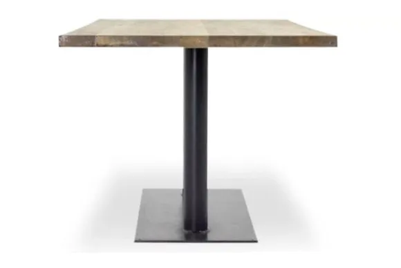 Deze tafel wordt standaard uitgevoerd met een eiken blad met rechte rand. De tafel heeft een bladdikte van 5 cm (2,5+2,5 opgedikt) en met metalen poten in de kleur rustiek/blauw staal.