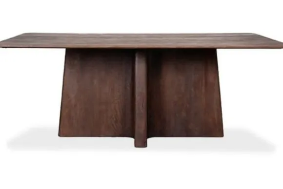 Eettafel Scott van het merk LABEL51 is een stijlvolle en moderne toevoeging aan elke eetkamer. Deze tafel is vervaardigd uit hoogwaardig mangohout, wat zorgt voor een warme, rijke uitstraling. Het robuuste tafelblad en het unieke, geometrische onderstel geven de tafel een eigentijdse en toch tijdloze look. Het onderstel bestaat uit twee stevige, schuingeplaatste panelen die elkaar in het midden kruisen, wat niet alleen zorgt voor een uniek design, maar ook voor extra stabiliteit. De donkere espresso-kleur benadrukt de natuurlijke houtnerf, wat elk exemplaar een uniek karakter geeft.