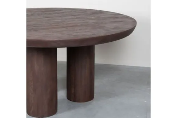 Olly is uitgevoerd in Espresso mangohout, een prachtig materiaal met een diepe, intense kleur die luxe en warmte uitstraalt. Het dikke, ronde tafelblad zorgt voor een robuuste, stoere uitstraling en vormt een stevig middelpunt in je eetkamer.