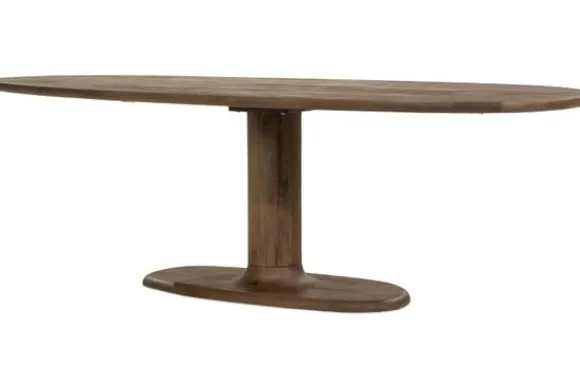 Dankzij de centrale kolompoot behoudt Eettafel Coco een open en luchtig gevoel, terwijl er voldoende ruimte is voor stoelen rondom. De warme bruine tint van het hout brengt rust en balans in de ruimte.