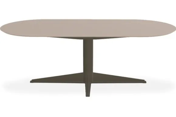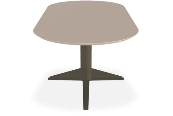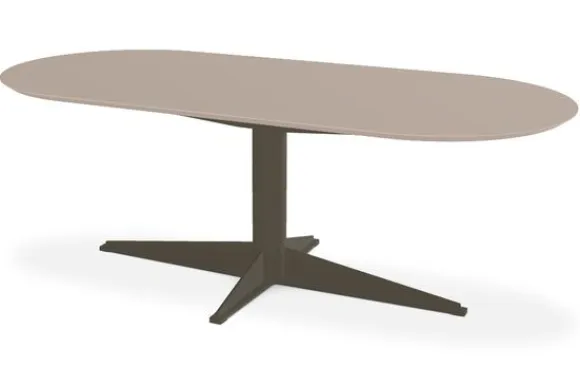 Eettafel Montevideo van het merk Every Table is een hedendaagse eyecatcher met een tijdloos en elegant karakter. Het plat ovale blad met zachte, organische lijnen en een taps aflopende zwarte rand creëert een luchtige verfijning, alsof het blad haast lijkt te zweven. Deze tafel is verkrijgbaar in diverse formaten en bladkleuren, van warme houttinten tot marmerlook keramiek, en past perfect binnen woonstijlen zoals Hotel Chic, Modern of Japandi. De poot is in verschillende uitvoeringen en andere kleuren te kiezen. Een stijlvol samenspel van vorm en functie dat je eethoek een luxueuze uitstraling geeft.