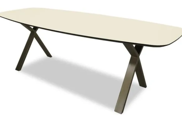 Deze eettafel wordt geleverd met metalen kruispoten in het champagne als tafelpoot. Onder “Kies je extra’s” is het mogelijk om te kiezen voor een andere kleur of een geheel andere tafelpoot.