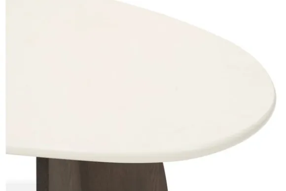 Eettafel Cusco van het merk Every Table BV heeft een bladvormig HPL blad van 2,8 centimeter dik dat stevig en gebruiksvriendelijk is. De standaard ronde rand geeft het ontwerp een zachte en luxe uitstraling. Het donkere onderstel voegt warmte toe en laat het blad mooi tot zijn recht komen.