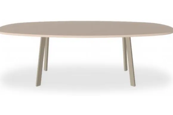Eettafel Nuvio van het merk Every Table BV is uitgevoerd met een stomp ovaal HPL blad. Het HPL blad is slijtvast, onderhoudsvriendelijk en geschikt voor intensief dagelijks gebruik. De tafel is standaard voorzien van een rechte rand.