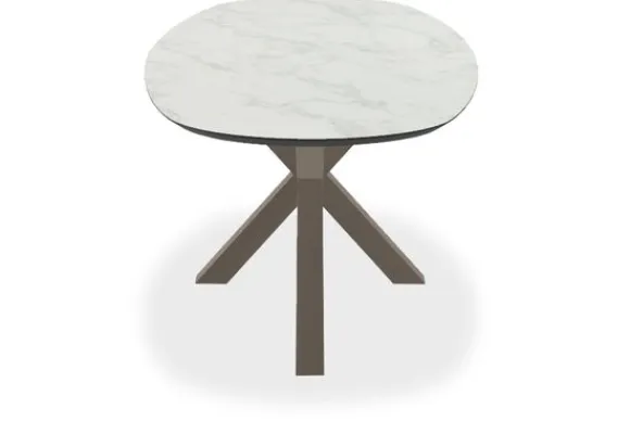 Deze eettafel wordt geleverd met een metalen poot in de kleur champagne. Er kan ook gekozen worden voor een andere tafelpoot.