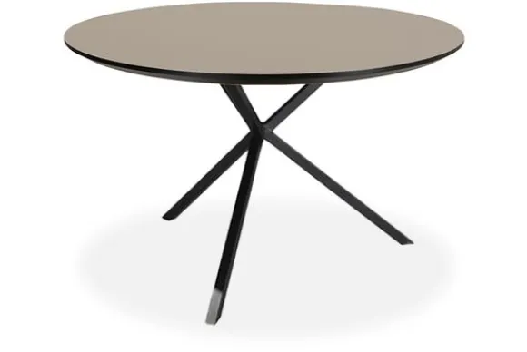 Het tafelblad heeft een dikte van 2,8 cm. Deze tafel wordt geleverd met een zwarte spinpoot.