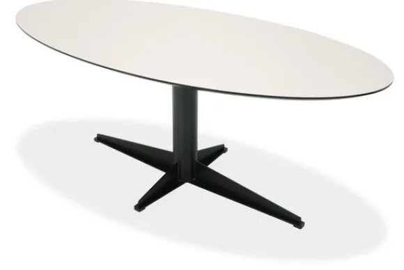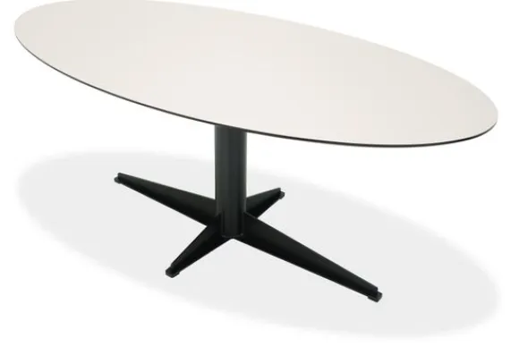 Eettafel Quito van het merk Every Table BV is een eigentijds statementstuk met een minimalistische elegantie. Het ovaal gevormde blad, vervaardigd uit hoogwaardig HPL, straalt een verfijnde eenvoud uit die perfect past binnen zowel een modern en industrieel interieur als een Scandinavisch geïnspireerde leefruimte. De slanke vormgeving en het strakke lijnenspel van de centrale poot met kruisvormige voet creëren een boeiend contrast tussen functionaliteit en esthetiek.