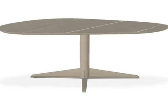 Eettafel Rosario van het merk Every Table BV heeft een elegante en eigentijdse uitstraling. De slippervorm en het 2,8 cm dikke blad met tapse rand geven de tafel een unieke en verfijnde look. De zachte tint van het blad brengt warmte en rust in elke eetruimte.