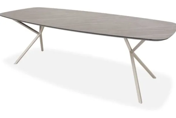 Eettafel San Dulhan van het merk Every Table is een tijdloos elegant statement voor liefhebbers van subtiel design en verfijnde details. Het Deens ovale blad met afgeronde hoeken en een taps aflopende zwarte rand zorgt voor een luchtige, moderne uitstraling met een artistiek randje. Deze tafel is beschikbaar in diverse formaten en luxe HPL bladkleuren, van lichte steenstructuren tot diepe, warme tinten. Het oppervlak is krasvast, hittebestendig en eenvoudig te reinigen, waardoor het ideaal is voor intensief dagelijks gebruik. De slanke, gekruiste poten in champagnekleur geven het geheel een lichtheid en ruimtelijkheid, en zijn naar wens ook in andere kleuren verkrijgbaar. Een geraffineerd ontwerp dat rust en klasse uitstraalt in elke eethoek.