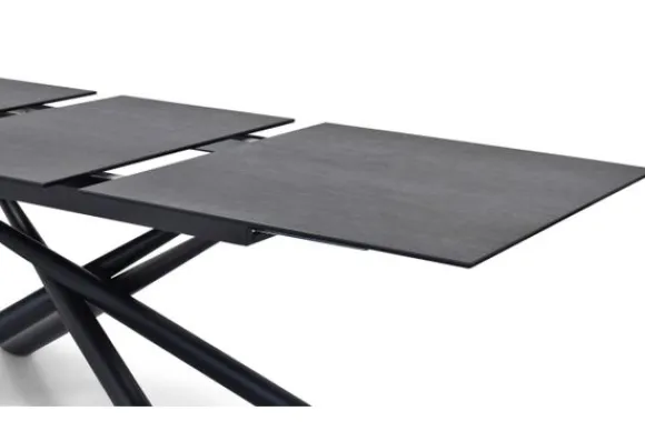 Eetkamertafel Example van het merk Infenta is verkrijgbaar in de afmeting B180 x D95 x H76 cm. De tafel is uitschuifbaar tot een afmeting van 240 cm. De tafel is voorzien van een keramisch bovenblad van 4 mm gelijmd op een getemperd glasblad van 8 mm.