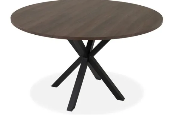 Eettafel Bury van het merk Lamulux is een ronde tafel met een strak ontwerp en een duidelijke houtstructuur in het blad. Het metalen onderstel is uitgevoerd als spinpoot en geeft de tafel een stabiele basis.