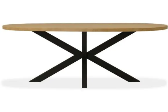 Eettafel Orion van het merk Lamulux, hier te zien in de kleur blond oak, is verkrijgbaar in diverse afmetingen en kleuren. De tafel is voorzien van een zwart metalen spinpoot. De eettafel heeft een kiezel vorm. Deze tafel wordt standaard uitgevoerd met een meekleurend tafelblad, je kunt ook kiezen voor een zwarte rand om het tafelblad. Het blad is afgewerkt met een melamine bovenlaag.