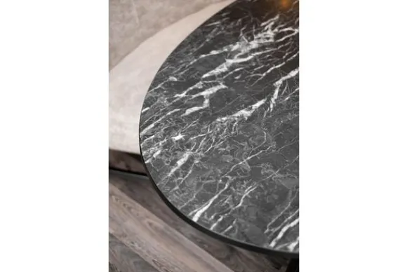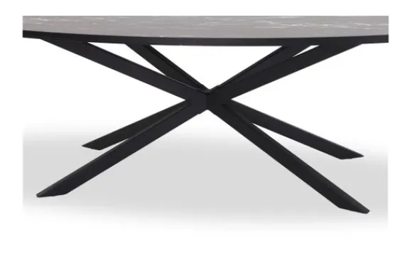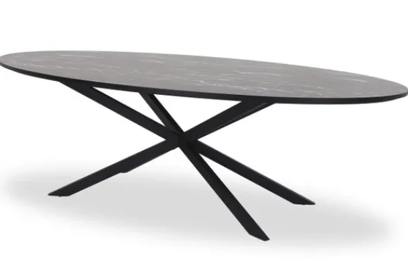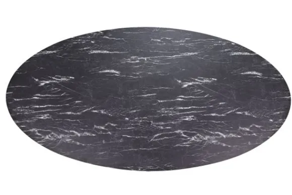 Eettafel Cherry van het merk Lamulux, hier afgebeeld in de kleur marmer nero, is beschikbaar in diverse afmetingen en kleuren. De tafel is voorzien van een zwart metalen onderstel. De rand van het ovale blad loopt recht af. Onder de tafelpoot zitten steldoppen, hiermee zorg jij ervoor dat de tafel stevig op jouw vloer staat.