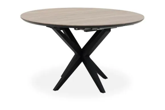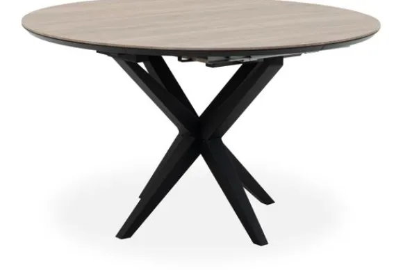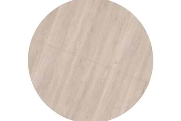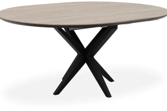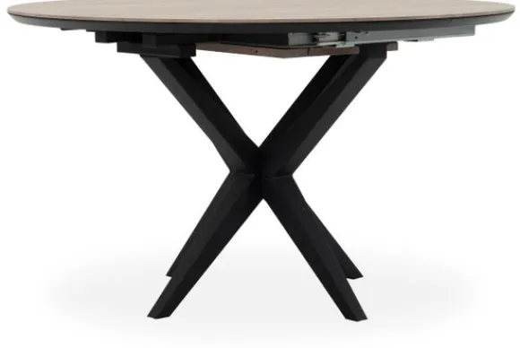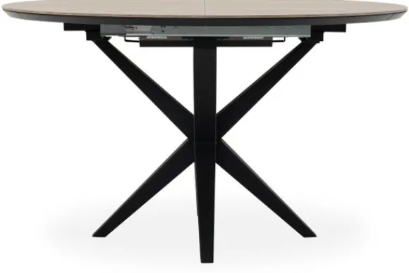 Uitschuiftafel Beaumont van het merk Lamulux is een moderne ronde tafel met een stevig zwart metalen onderstel. Dankzij het ronde blad ontstaat er een gezellige setting waarbij iedereen eenvoudig met elkaar in contact staat. Wanneer de tafel uit wordt geschoven krijgt deze een ovale vorm.