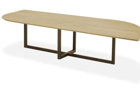 Eettafel Amarant van het merk Premium Interior is een elegante blikvanger met een asymmetrisch blad en verfijnde afwerking in eikenfineer. De combinatie van vorm en materiaal zorgt voor een moderne uitstraling met een natuurlijke charme. Het is een eettafel die goed past bij vrijwel iedere moderne woonstijl.