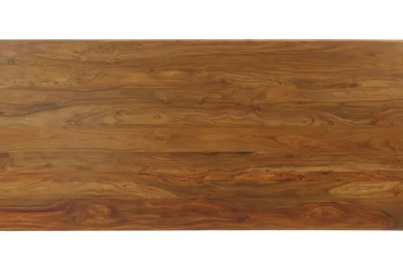 Eettafel Dimaro van het merk Tower Living is verkrijgbaar in verschillende afmetingen. De tafelpoten zijn gemaakt van Sheesham hout. Sheesham is een hardhout met een intensieve nerf structuur en prachtige warme tint. Het tafelblad is gemaakt van mangohout. Mangohout kun je herkennen aan de vele kleurschakeringen en ongelijkheden in het oppervlakte van het hout, waardoor geen enkel meubelstuk hetzelfde is. De kleuren in mangohout kunnen variëren van licht- tot donkerbruine tonen, met soms een rode gloed of juist een gelige ondertoon. Mangohout is een duurzame houtsoort. Het tafelblad heeft een rechthoekige vorm en de randen zijn taps afgewerkt. Het ontwerp van de tafel is eenvoudig en tijdloos, waardoor het een goede keuze is voor verschillende interieurstijlen.