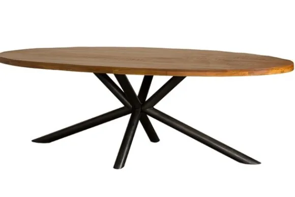 Eettafel Selva van het merk Tower Living is een stoere industriële tafel, door de metalen poot en houten blad. Het houten ovalen blad is gemaakt van duurzaam mangohout wat ligt op een metalen spin poot. Mangohout kun je herkennen aan de vele kleurschakeringen en ongelijkheden in het oppervlakte van het hout, waardoor geen enkel meubelstuk hetzelfde is. De kleuren in mangohout kunnen variëren van licht- tot donkerbruine tonen, met soms een rode gloed of juist een gelige ondertoon.