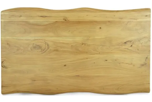 Eettafel Ultimo van het merk Tower Living is beschikbaar in diverse afmetingen. Deze tafel heeft zwart metalen u-poten en een acaciahouten blad in de kleur naturel. Het blad heeft aan de lange kanten een boomstam afwerking. Acaciahout is een duurzame houtsoort, daarnaast is het een harde houtsoort waardoor jouw blad erg lang mee gaat. Het hout heeft een fijne nerf en een warme uitstraling.