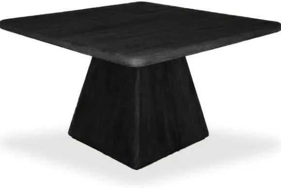 Eettafel Asti van het merk Tower Living is een krachtig ontwerp met een moderne uitstraling, uitgevoerd in diepzwart mangohout dat elegantie en karakter ademt. Het vierkante blad met afgeronde hoeken rust op een robuuste, taps toelopende poot, wat het geheel een sculpturale en solide uitstraling geeft. De zichtbare houtstructuur voegt een tactiele diepte toe die de natuurlijke charme van het materiaal benadrukt.