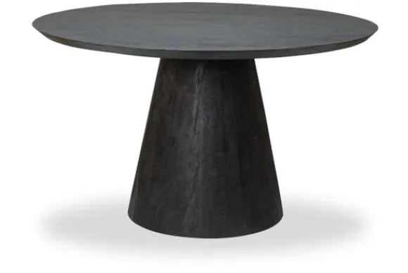 Eettafel Premana van het merk Tower Living is gemaakt van mangohout. Mangohout kun je herkennen aan de vele kleurschakeringen en ongelijkheden in het oppervlakte van het hout, waardoor geen enkel meubelstuk hetzelfde is. De eettafel is zwart gekleurd en met een matte lak afgelakt. Het tafelblad is rondvormig en de randen zijn taps afgewerkt met daaronder een robuuste tafelpoot.
