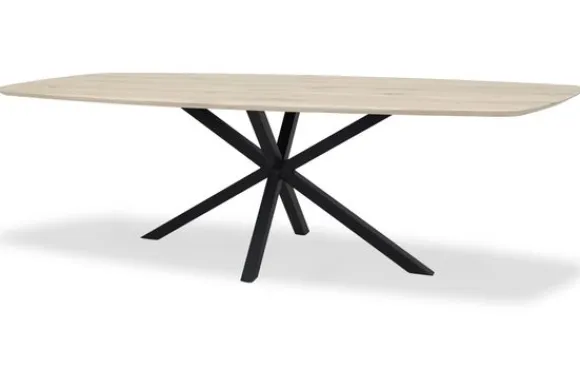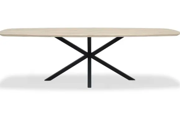 Eettafel Vina van het merk Van Dijk Furniture is een verfijnde verschijning met een moderne flair en een subtiel speels karakter. Het Deens ovale blad in licht eikenhout laat een zachte nerftekening zien, waarbij de natuurlijke elegantie van het materiaal volledig tot zijn recht komt. Met een dikte van 4,4 cm – waarvan 2 cm opgedikt – oogt de tafel luchtig, maar voelt ze tegelijkertijd solide aan.