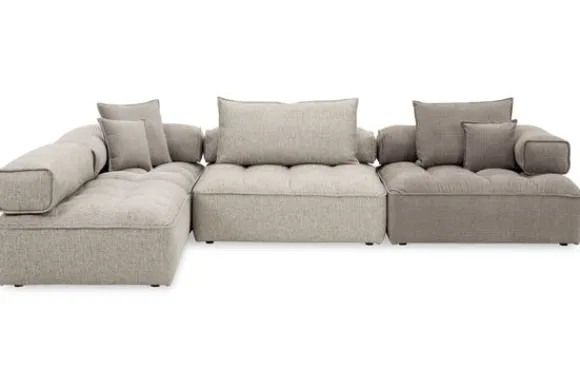 Bankstel Puzetti van het merk Be Inspired is een tijdloze en elegante elementenbank met een rustige uitstraling. De rugleuningen van deze bank zitten niet vast aan het zitgedeelte. Deze zijn aan de onderkant verzwaard zodat ze blijven liggen wanneer je er tegenaan leunt. Ook kan deze bank samengesteld worden uit verschillende stoffen voor een uniek en speels effect zoals deze afgebeelde opstelling.