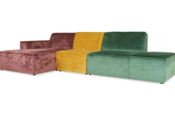 Loungebank Sevijn van het merk Kenzo is verkrijgbaar in alle kleuren en in verschillende materialen zoals stof, velvet en rundleder.