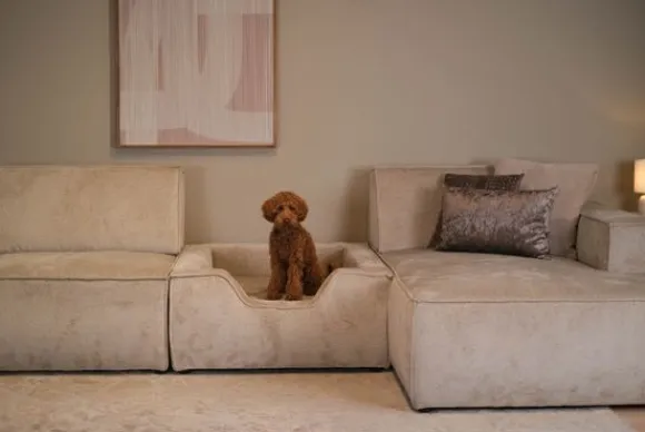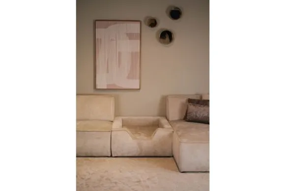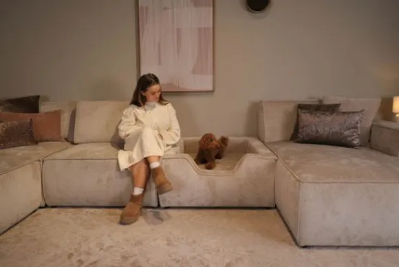 Hoekbank Sevijn van het merk Kenzo is verkrijgbaar in alle kleuren en in verschillende materialen zoals stof, velvet en rundleder. Er kan gekozen worden uit verschillende afmetingen, zo is er een passende bank voor iedere woonruimte! Het bankstel heeft een strakke uitstraling en heeft een stevige zit door de vaste kussens. Deze bank heeft geknepen naden langs de armleuningen en alle kussens, waardoor dit bankstel ook stoer oogt. Wat deze bank uniek maakt, is dat de rugleuning van de bank versteld kan worden. Dit doe je door deze op te tillen en naar voren te zetten. Zo bepaal je zelf de zitdiepte van de bank. Bij deze bank zit ook een huisdierenmand, zo heeft jouw dierenvriend ook zijn eigen plekje op de bank! De mand heeft een uitneembaar kussen die je kunt wassen.