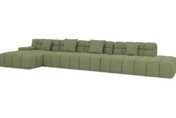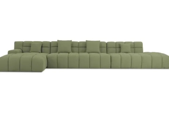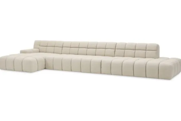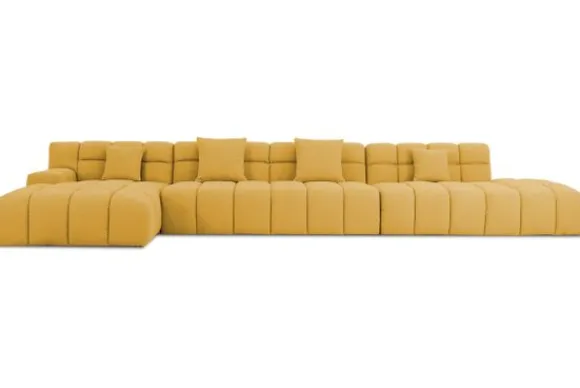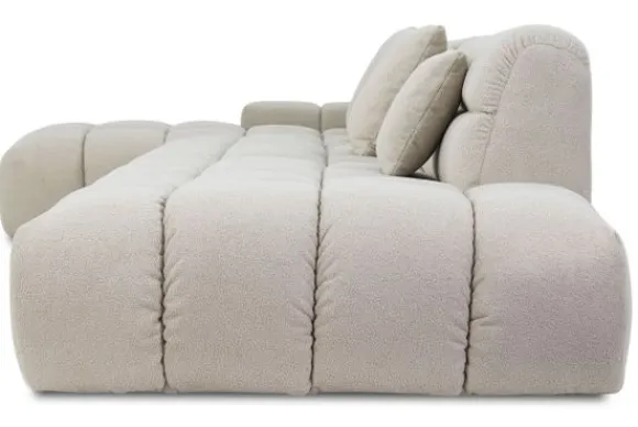 Je kunt kiezen uit verschillende materialen, waaronder stoffen als velvet en boucle. Daarnaast is de bank verkrijgbaar in uiteenlopende kleuren.