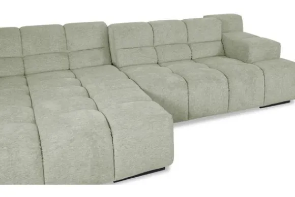 Dit bankstel is samen te stellen in vele afmetingen en verschillende opstellingen, of kies uit een van de standaard opstellingen. Ook kan je kiezen uit mat zwarte of chroom pootjes en zijn er bijpassende hoofdsteunen, sier- en lendekussens en poefjes beschikbaar. Deze worden uitgevoerd in dezelfde stof als de bank.