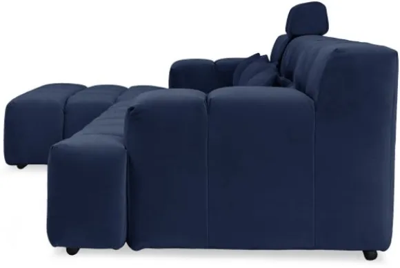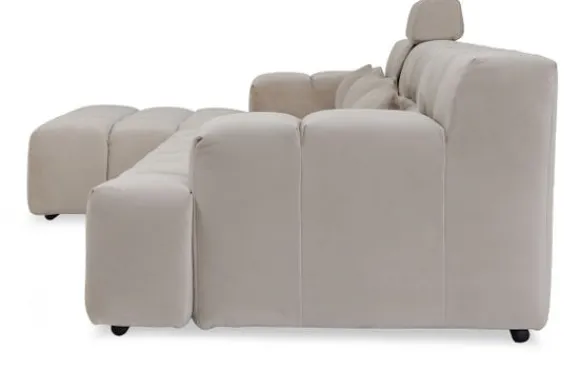 Dit bankstel is samen te stellen in vele afmetingen en verschillende opstellingen, of kies uit een van de standaard opstellingen. Ook kan je kiezen uit mat zwarte of chroom pootjes en zijn er bijpassende hoofdsteunen, sier- en lendekussens en poefjes beschikbaar. Deze worden uitgevoerd in dezelfde stof als de bank.