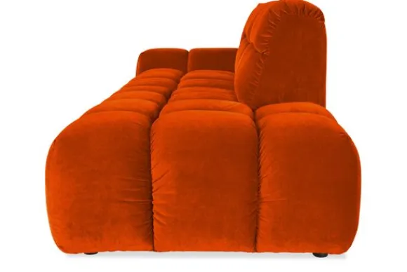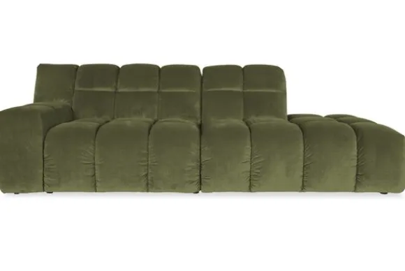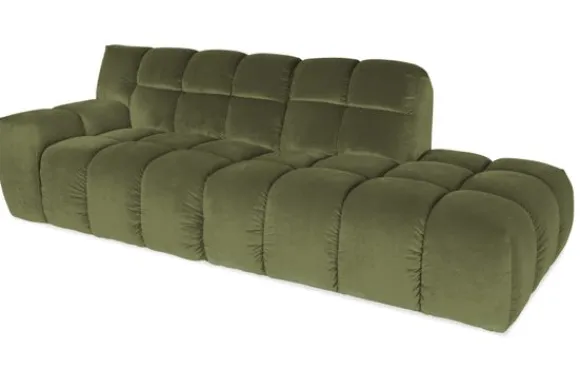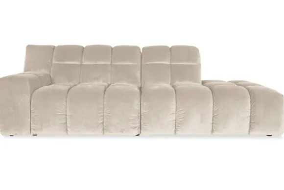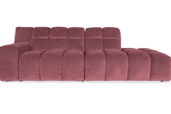 Je kunt kiezen uit verschillende materialen, waaronder stoffen als velvet en boucle. Daarnaast is de bank verkrijgbaar in uiteenlopende kleuren.