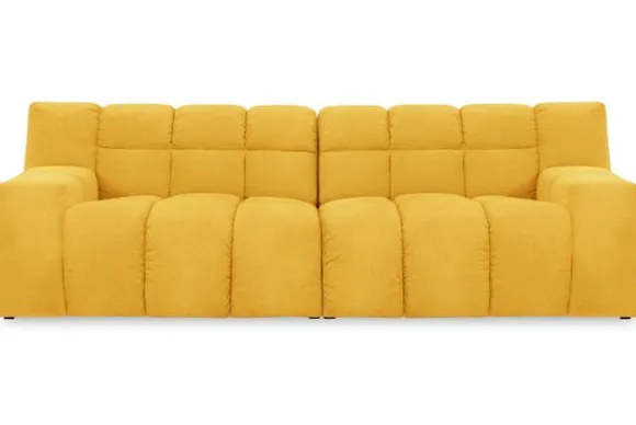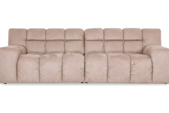 Je kunt kiezen uit verschillende materialen, waaronder stoffen als velvet en boucle. Daarnaast is de bank verkrijgbaar in uiteenlopende kleuren.