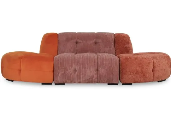 Je kunt kiezen uit verschillende materialen, waaronder rundleder en stoffen als velvet en boucle. Daarnaast is de bank verkrijgbaar in een breed scala aan kleuren. Je kan bij deze bank kiezen om alle elementen in dezelfde kleur te laten stofferen, of juist in verschillende kleuren.