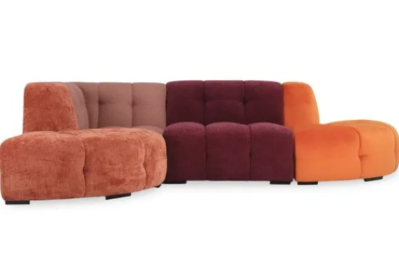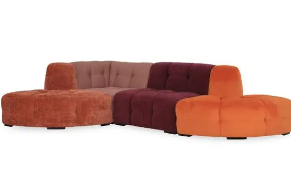 Je kunt kiezen uit verschillende materialen, waaronder rundleder en stoffen als velvet en boucle. Daarnaast is de bank verkrijgbaar in een breed scala aan kleuren. Je kan bij deze bank kiezen om alle elementen in dezelfde kleur te laten stofferen, of juist in verschillende kleuren.