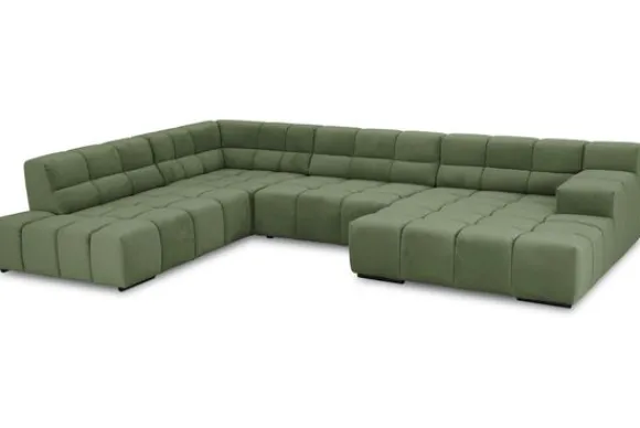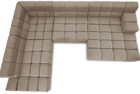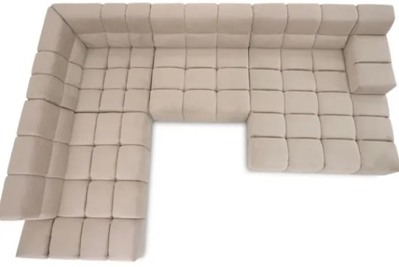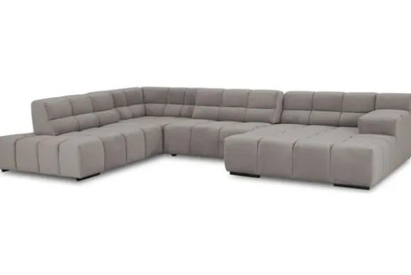 Dit bankstel is samen te stellen in vele afmetingen en verschillende opstellingen, of kies uit een van de standaard opstellingen. Ook kan je kiezen uit mat zwarte of chroom pootjes en zijn er bijpassende hoofdsteunen, sier- en lendekussens en poefjes beschikbaar. Deze worden uitgevoerd in dezelfde stof als de bank.