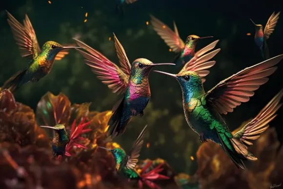 Glasschilderij Gekleurde kolibries