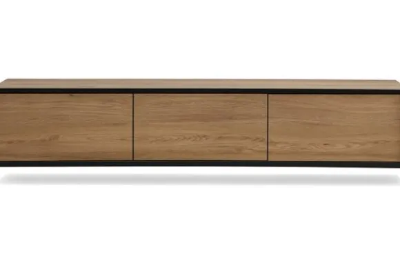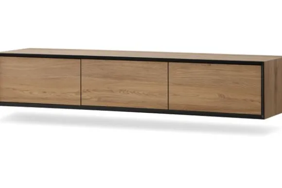 Hangend tv-meubel Compose van het merk Ideco is een stijlvolle en veelzijdige toevoeging aan ieder interieur. Het strakke, zwevende ontwerp met warme houttinten en een subtiel zwart metalen frame straalt een moderne elegantie uit. Dankzij de tijdloze vormgeving past dit meubel moeiteloos in een industrieel interieur, waar de robuuste uitstraling prachtig samengaat met ruwe materialen zoals beton en staal. In een modern of Scandinavisch interieur brengt het natuurlijke hout een warme en serene balans, terwijl het minimalistische design zorgt voor een ruimtelijk effect.