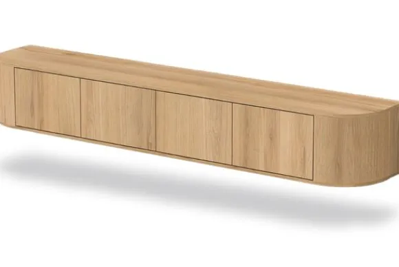 Hangend tv-meubel Novero van het merk Livingfurn is een zwevend wandmeubel met een lichte houtkleur en afgeronde vormen. Door het hangende ontwerp blijft de vloer vrij, wat dit tv meubel geschikt maakt voor de woonkamer en zorgt voor een open indeling.