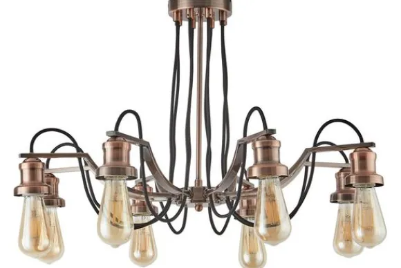 Hanglamp Olivia 1068-8CU van het merk Searchlight is koperkleurig en heeft 8 lichtbronnen.