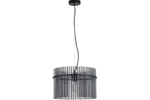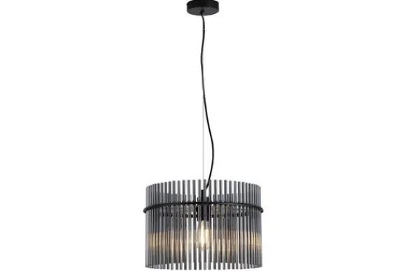 Hanglamp Swizzle 55621SM van het merk Searchlight straalt luxe en verfijning uit. De lamp is gemaakt van metaal en glas en heeft een cilindervormige kap met smalle, verticale glazen buisjes. De zwarte afwerking geeft de lamp een moderne en elegante uitstraling die moeiteloos past in diverse woonstijlen.