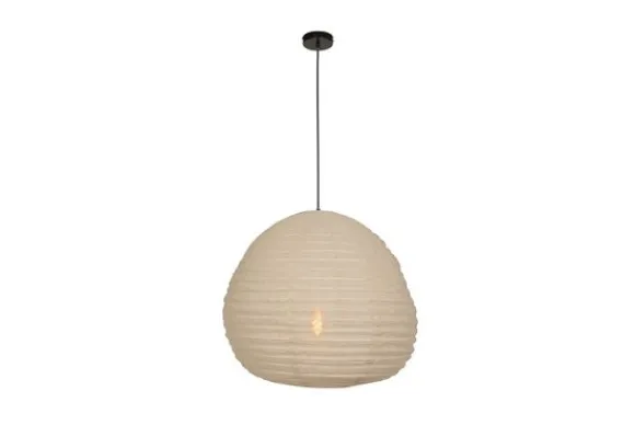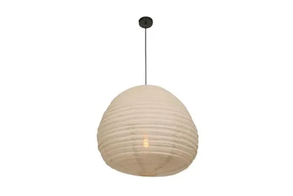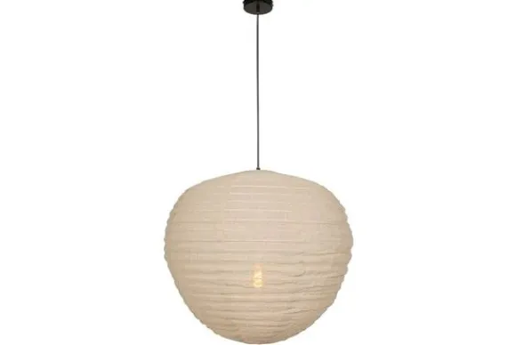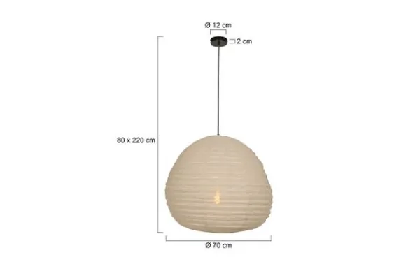 Met een royale doorsnede van 70 centimeter vormt hanglamp Bangalore een echte blikvanger. Uniek is dat de kap op twee manieren kan worden opgehangen, met de bolle kant naar beneden of naar boven. Het meegeleverde strijkijzersnoer geeft de lamp een speels en stijlvol accent, waardoor deze perfect past in een modern, Scandinavisch of Japandi interieur.