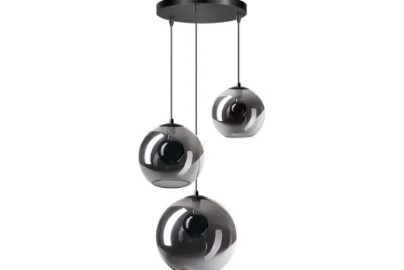 Hanglamp Orb van het merk ETH is niet alleen mooi wanneer hij brand. Overdag is het ook zeker een plaatje om naar te kijken. Deze lamp bestaat uit drie glazen bollen. De bollen zijn voorzien van smoky glas. Door het gekleurde glas geeft de lichtbron sfeervol licht, waardoor het licht niet te fel is. De drie glazen bollen hebben alle drie een andere afmeting, waardoor een speels effect wordt gecreëerd. De bollen hebben een diameter van 30, 25 en 20 cm. De bollen zijn verstelbaar in hoogte, de maximale hoogte is 140 cm. De kappen zijn 27, 22 en 17 cm hoog. De Orb lampencollectie bestaat uit een hang-, tafel- en vloerlamp.