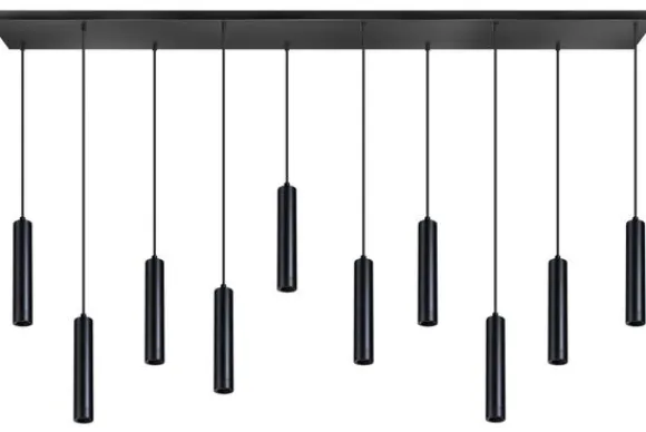 Hanglamp Miller van het merk ETH is uitgerust met 10 E27 fittingen met een maximale wattage van 60 Watt. Aan het uiteinde van elke spot kan zowel een zwarte als een goudkleurige ring worden geplaatst. Deze kun je na verloop van tijd weer omwisselen als je weer wat anders wilt! Ook heb je nog de mogelijkheid om de ringen weg te laten en te kiezen voor decoratieve ledlampen. De lampen zijn onafhankelijk in hoogte te verstellen bij de montage tot 200 cm.
