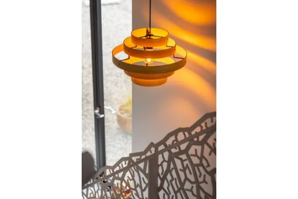 Hanglamp Oaknut van het merk ETH is niet alleen mooi wanneer hij brand. Overdag is het ook zeker een plaatje om naar te kijken. Deze lamp bestaat uit vijf eikenhouten ringen. De lamp is verstelbaar in hoogte, de maximale hoogte is 177 cm. De kap is 35 cm hoog.