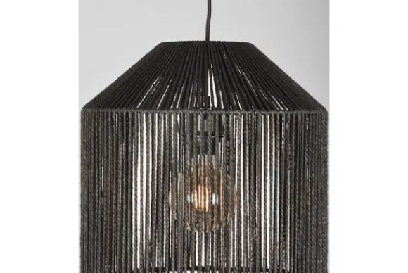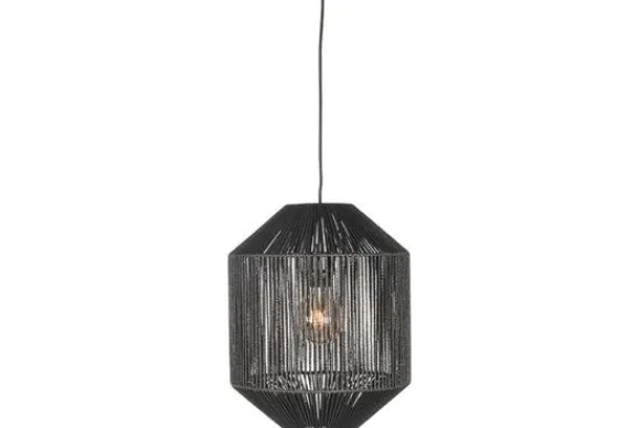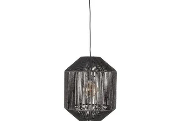 Hanglamp Ibiza MT-2321 van Label51 is een gezellige speelse lamp waarmee je een stukje Ibiza, en daarmee heel veel sfeer in huis haalt. De lamp bestaat uit een zwart jute cilindervormige kap en zwarte metalen accenten. Deze frisse combinatie zorgt voor een chique twist en geeft bij uitstek een huiselijk gevoel. Door de geweven draad ontstaat er een halfopen lijnenspel waardoor er een prachtig lichteffect met schaduwwerking ontstaat als de lichtbron brandt. De cilindervormige kap hangt middels een zwartkleurig strijkijzerkoord vast aan de ronde zwarte metalen plafondplaat.